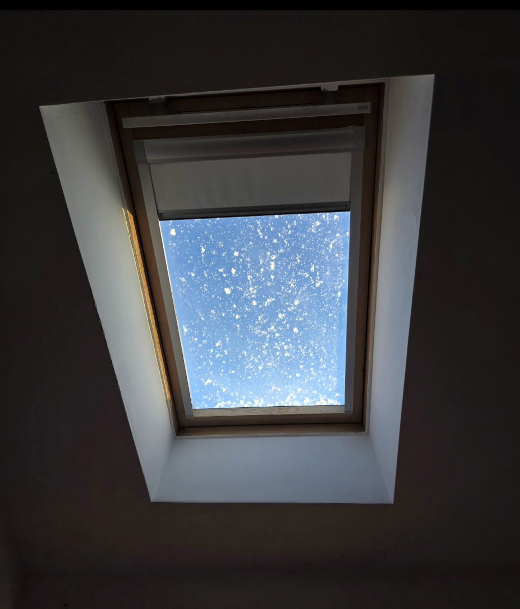 Când se trezi, văzu pe geamul din tavan picurii de ploaie ca pe niște puncte negre care îi întunecau privirea. Rămase mult timp cu gura deschisă și ochii pironiți în geam, neputând să se miște, văzând cum picurii se adună și îi fac camera din ce în ce mai întunecată. Frica din vis îi era proaspătă în suflet.